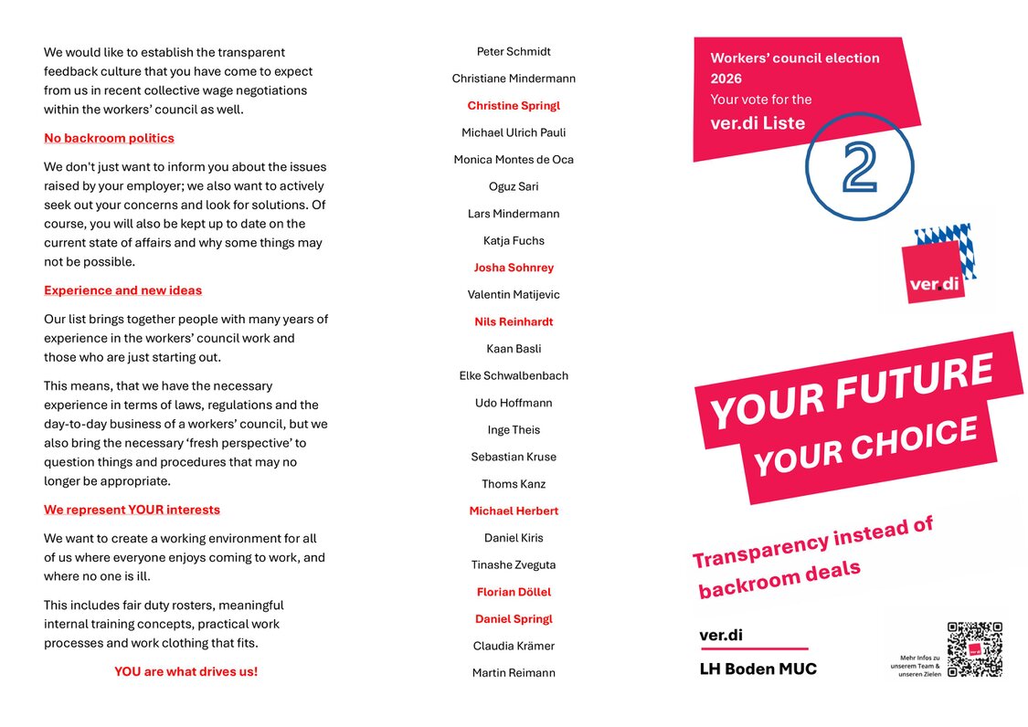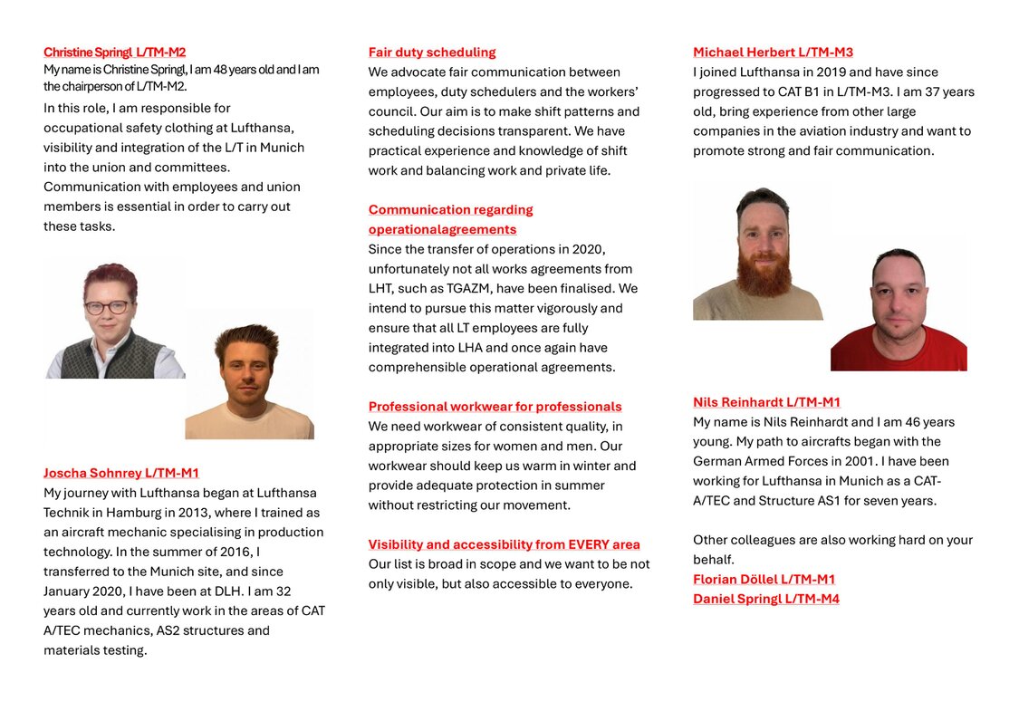 As ver.di union representatives and candidates on list 2 ‘ver.di LH Boden MUC’, we are available to talk to you directly on site.